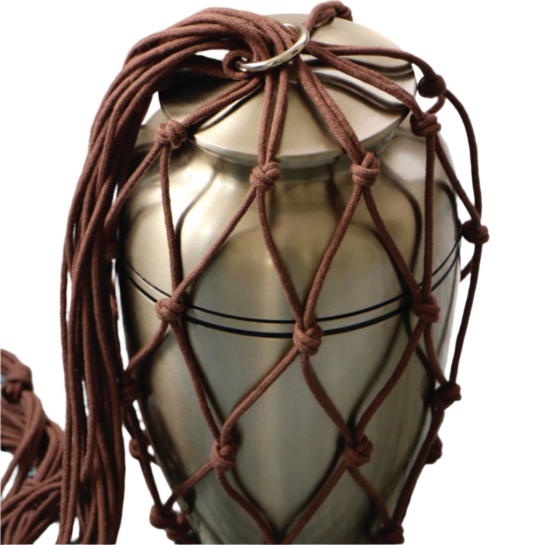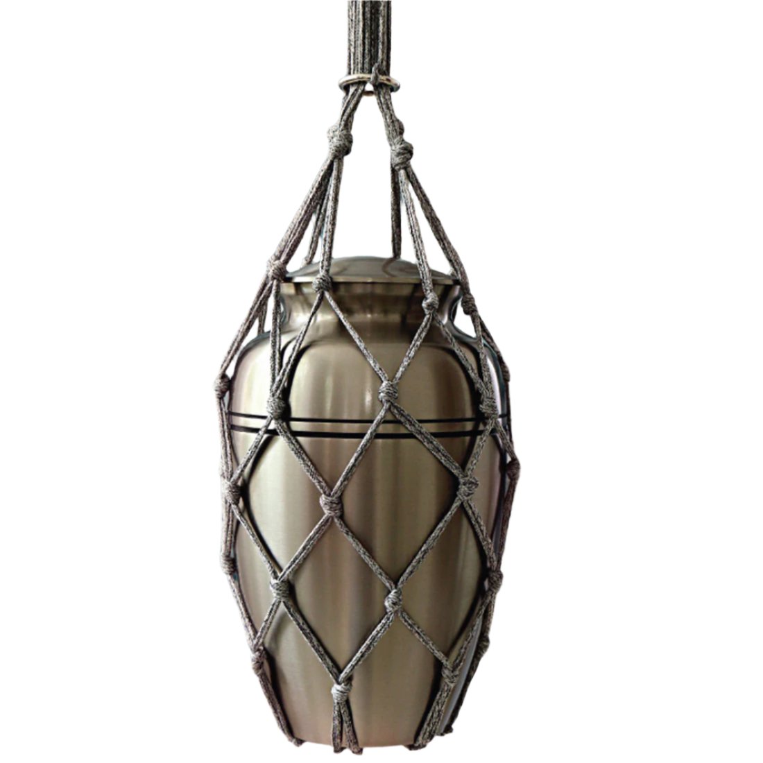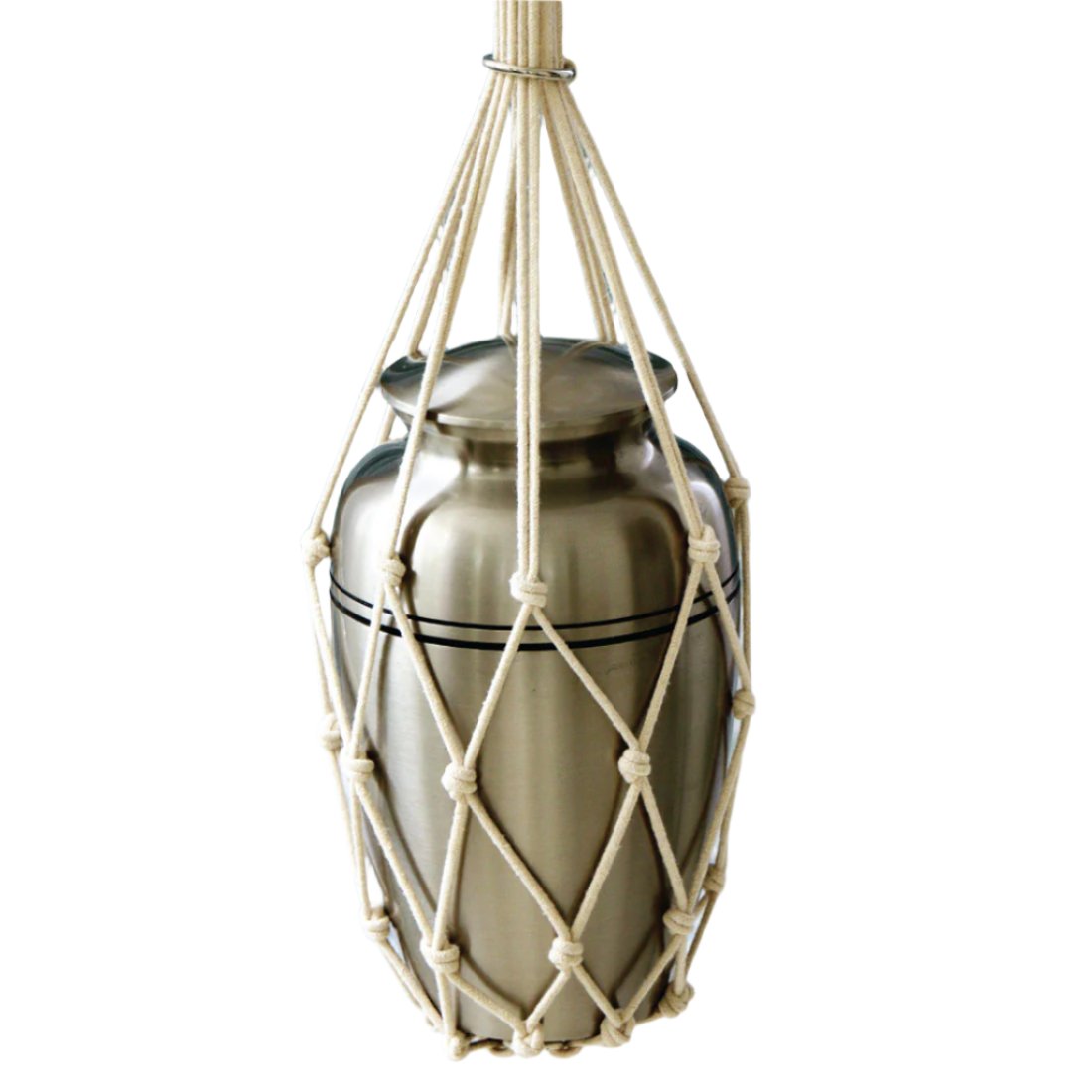Designed to help gently and gracefully lower urn into burial site. Hand-crafted with biodegradable durable cord to fit any size urn or burial box. Urn not included. Made in USA.