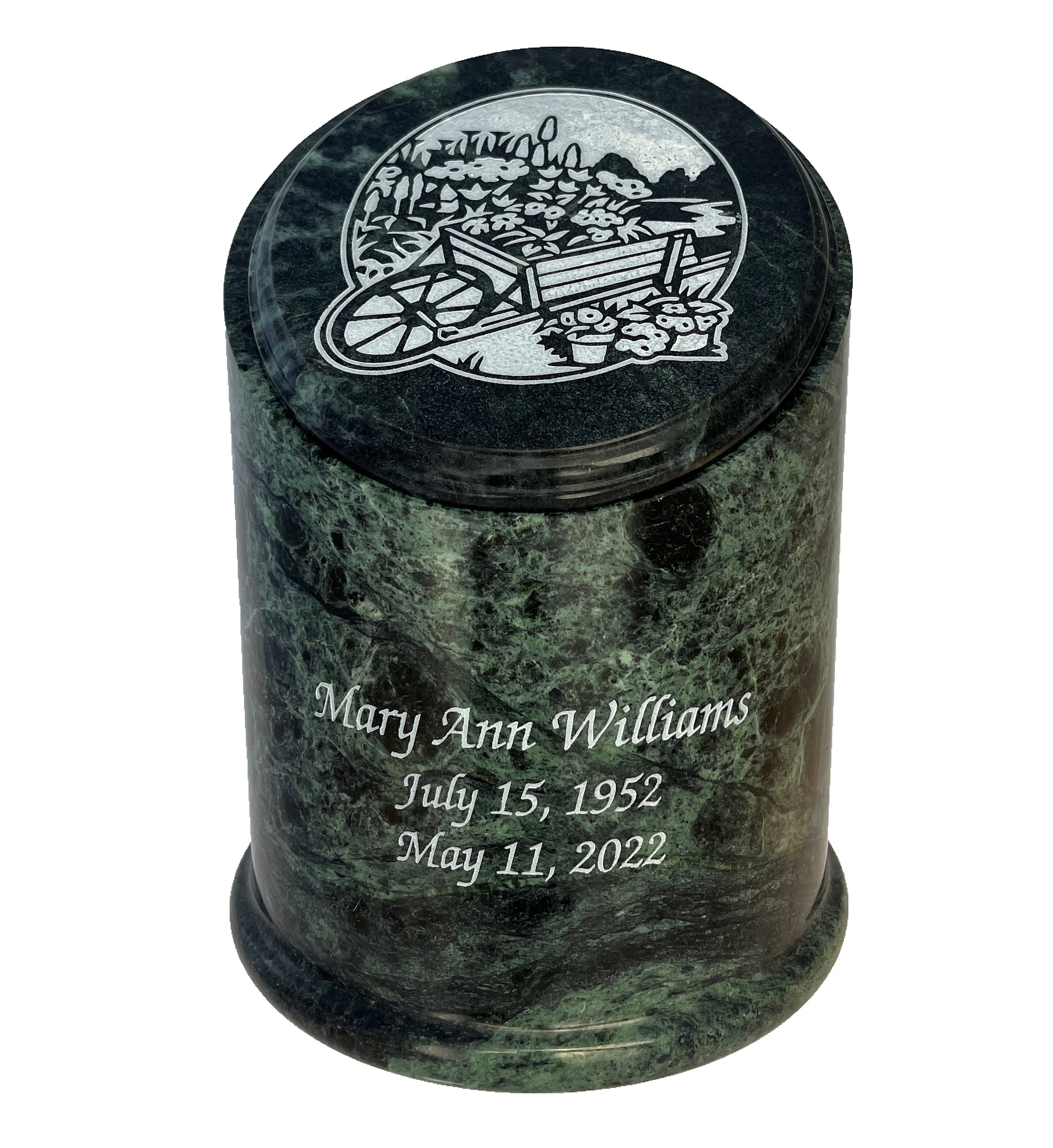 This round slant top marble urn makes a fine-looking memorialization piece.