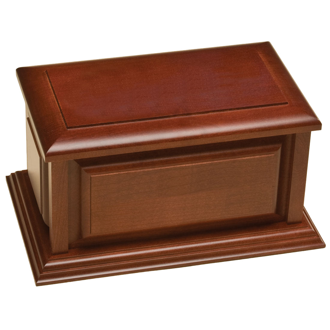 This elegant cherry box with a satin finish features gorgeous accent detailing and beveling. Bottom opening.