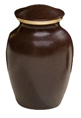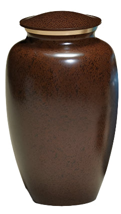 Beautiful Brass urn featuring a speckled black and brown finish and a bronze accent ring beneath the lid.