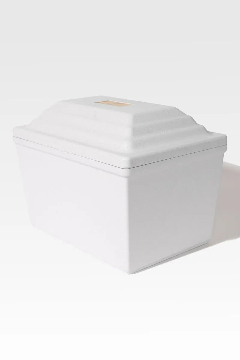 The Fortress® urn vault is the leading poly urn vault in the market. It’s made from durable ABS plastic, features a tongue and groove design for maximum strength and a secure seal. Available in white marble and gold with a burgundy velour-lined interior
