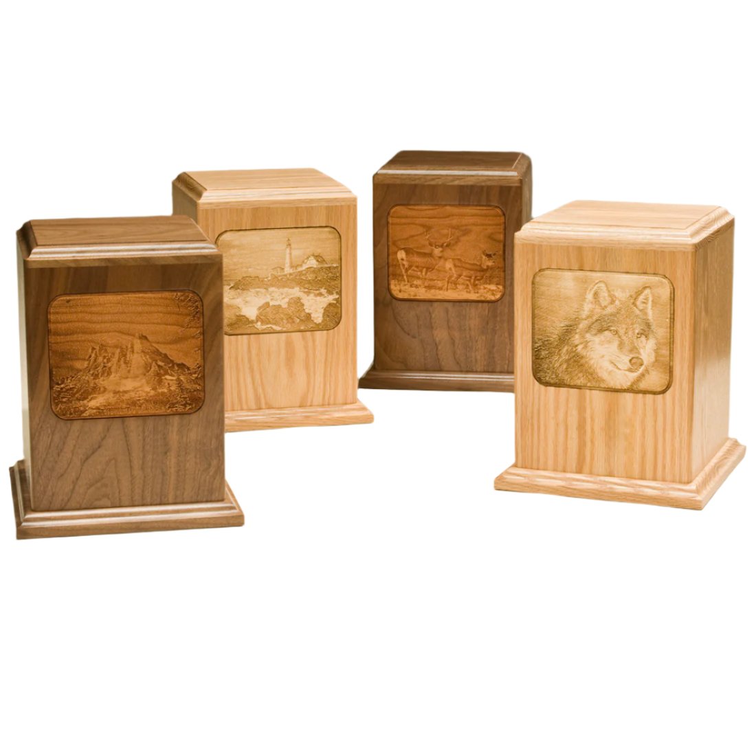 Solid wood with etched designs. These incredibly etched images bring nature to life in vivid detail. Bottom opening.