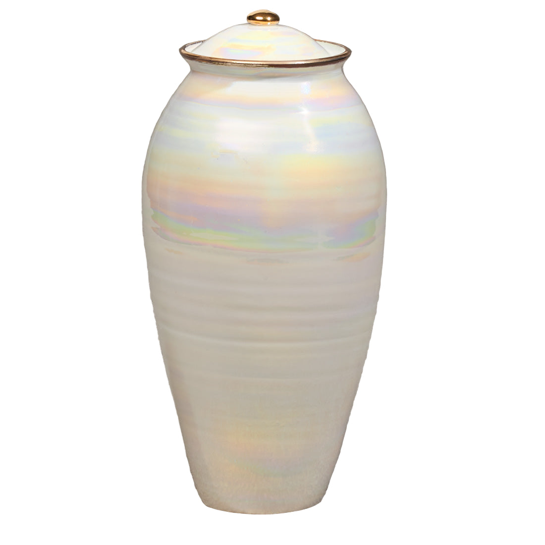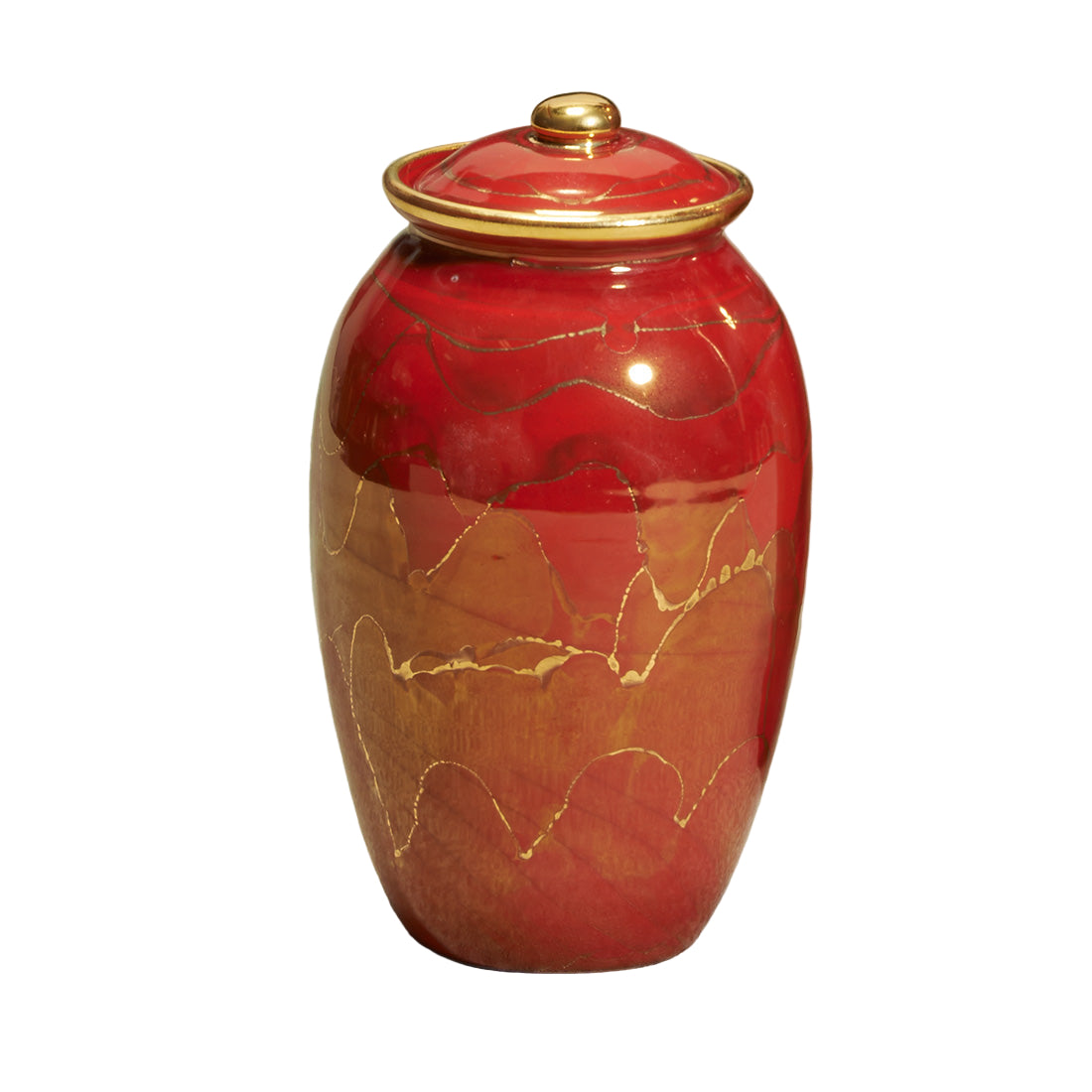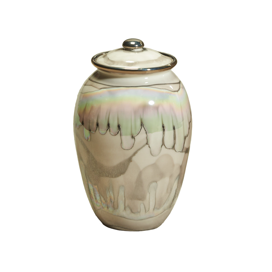 Hand-thrown ceramic with a luminescent ebony finish created from a glaze containing 22k gold. Top-opening lid. Shown with optional hanging frame pendant (item: 538266).