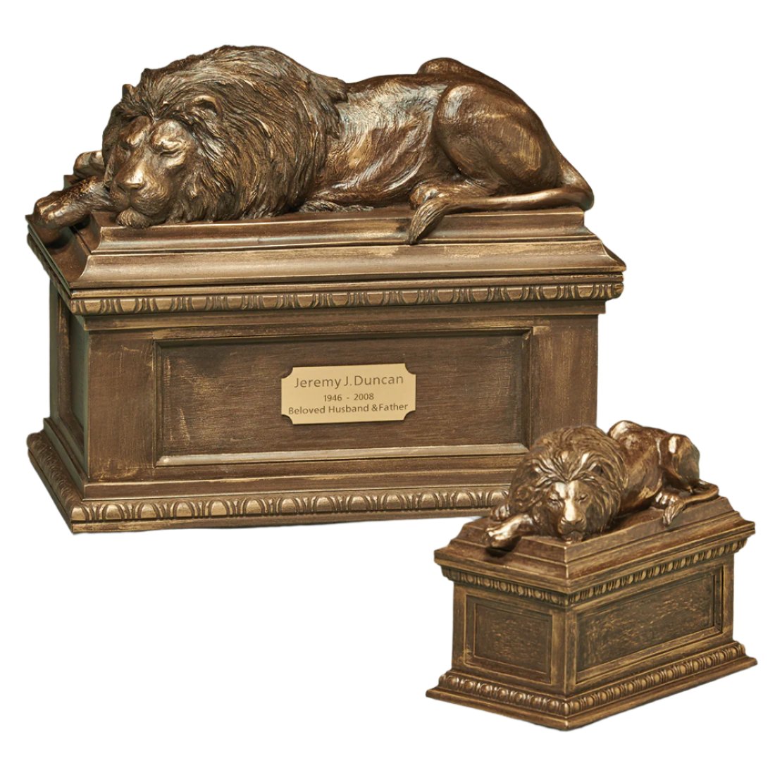 Simulated bronze. Bottom-Opening. 300 cu. in. urn is shown with optional engraved metal plate.
